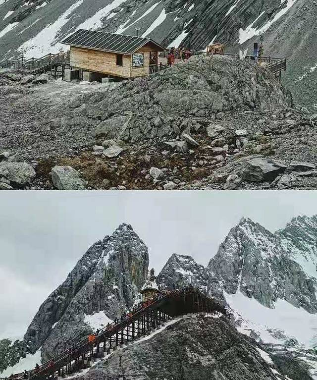 玉龙雪山:有中索道,大索道几条路线,我选择的是大索道,希望能爬上4680海拔挑战自己。上缆车后上升速度很快,有点像飞机爬升的感觉(会耳鸣),首先到达4506海拔的平台,需要再爬楼梯上4680顶峰。到这里天气也变化多端,时而天晴时而大风,我们到达的时候还下起了雪。适应10-15分钟就可看看爬楼梯上顶峰,看着雪山越离越近,感觉怎么拍都不够呀,雪山很美。