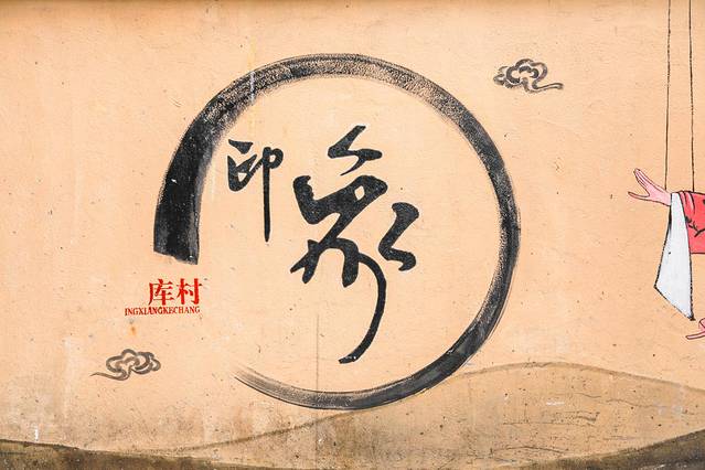 在库村包氏和吴氏是大姓,这两个大族在库村创造了空前的耕读风气,先后创建三个书院,如今还能看到保存完好的外翰第,青瓦、原木、蛮石的不同质地与色彩的对比形成了强烈的视觉冲击,墙体斑驳的彩绘还能让人感受到主人较高的审美品位。金光闪闪、遒劲有力的“外翰第”匾额悬挂在木门楼额枋之上,字显然是出自名家之手,可以算得上镇宅之宝了。