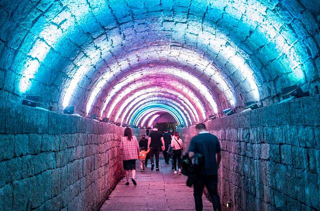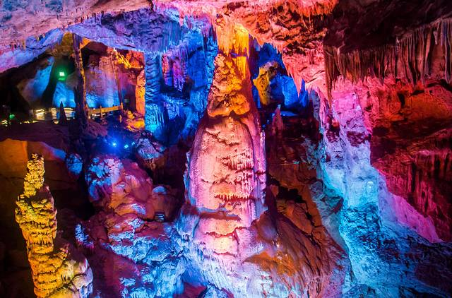 注意事项:地下溶洞灯光暗淡地板湿滑,走在里面一定要注意脚下,小心摔倒。