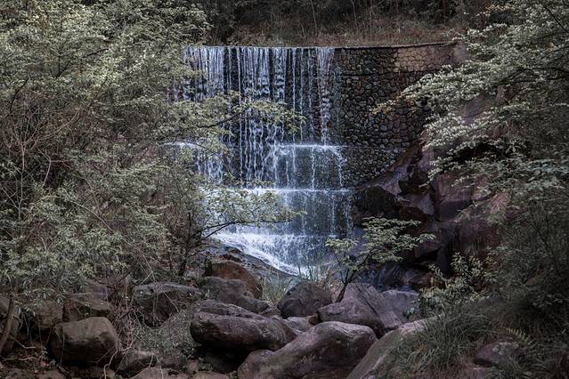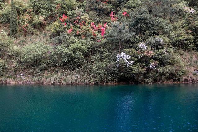 大奇山的水也很有特色,特别是飞瀑之上的水潭,呈现出一种很特别的蓝色,有点九寨沟的感觉,加上这个季节两岸山花开得正艳,值得好好观赏一下,不过摸着却是还有点冷,看来五月的炎热并没有影响到这里,相信夏天又是一个避暑好地方~