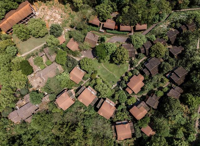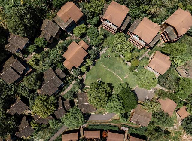 说起来,别看这个酒店的名字听着很乡村,其实住宿环境真是不错,独栋式小木屋别墅星星点点的分布在密林之中,漂亮的天目溪就从屋旁流过,背后是一片茂林山峰,景色完全不比一般的景区差。