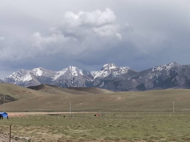 去郎木寺的途中进入草原地区,随时可以下车拍照草原和远处的雪山。特别感谢这里的国道已经禁止火车通行,货车靠边停了一路。