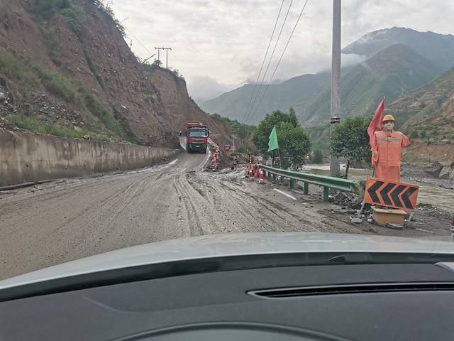 这一段上高速前的路都是顺江而下,路况比较差。随处可见的塌方和临时便道。