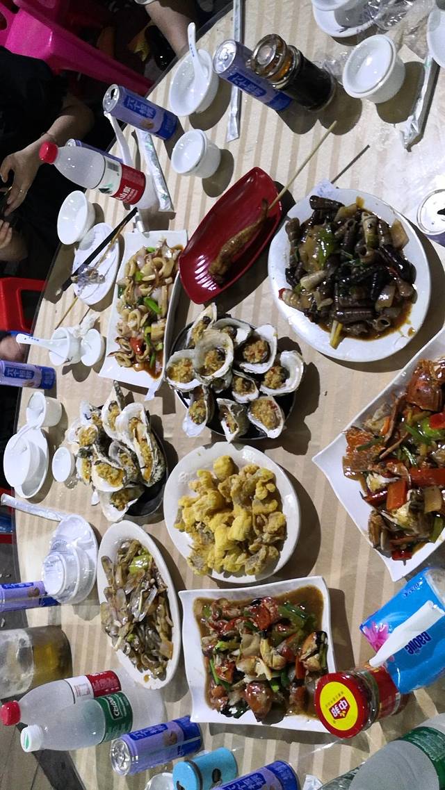 夜市摊吃海鲜,不是太贵,我们8人吃了600多块钱,不过吃了晚上拉肚子,无福消受啊。