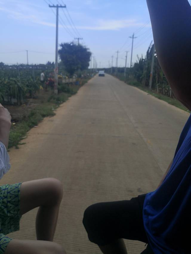 一上岸,在那个小巷子里,人多,三轮车更多,到处都是喊客的。一定要记住砍价,我问的第一个三轮车,说三个景点,海龟城、那晏海滩、灯塔,包接送250块,没理他,朋友先上岸,说是高于60就坑爹,接着问了另一辆,开口60,我想差不多了,60就60,上车出发。后来才知道,60也贵了,50就走,按次数不按人数,我们回来时两家人,大人小孩一起12个,还不是50块钱。岛上路不好走,路两边全是香蕉和火龙果,可以买水果,但没必要,没开车拿不动。
