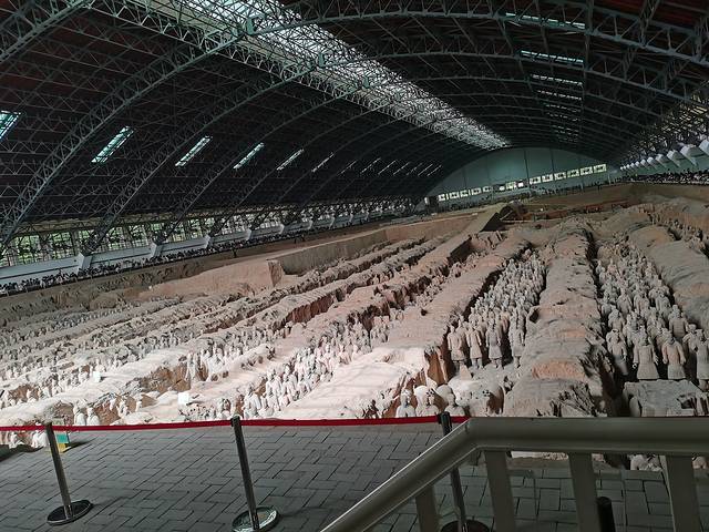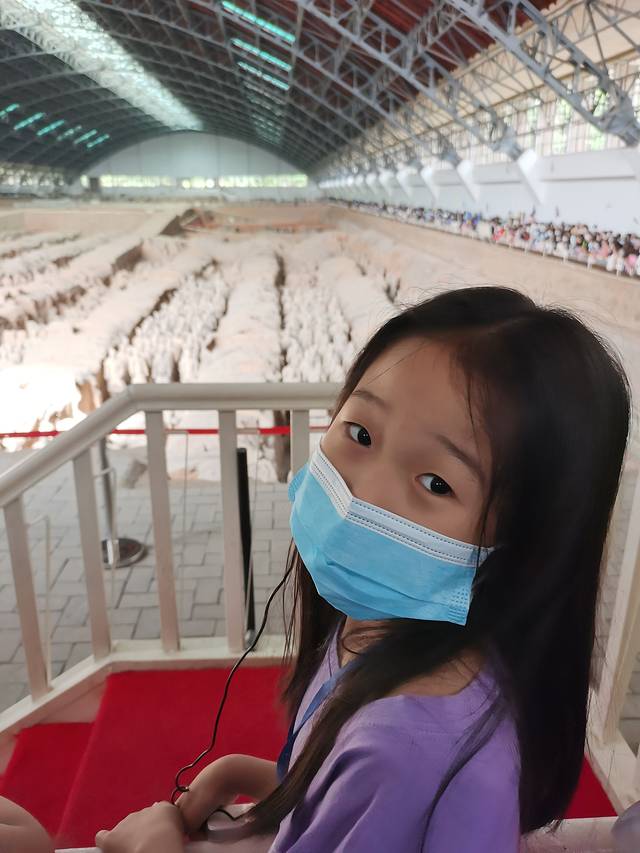 酒店到兵马俑车程半小时,不堵车,这里说一下:千万不要被看似交警的停车场保安骗进写着“秦岭兵马俑停车场”的停车场,离景点还远的很,好几个人站成一排,大喊:前边堵车了,过不去了,往里拐停车场。我们看到好多车被骗进去了,还好孩儿爸机智,然后用对讲机告知队友😁,没有被坑,直接导航到1号停车场🅿️,这个最近,其他停车场不要进。