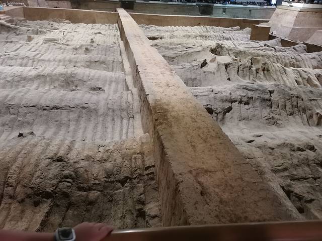 2号坑:只出土了最边上的一点点,后边都是没有挖出来的,因为挖出来后会被氧化,掉色,目前还没有足够成熟的技术