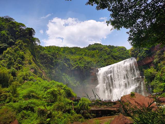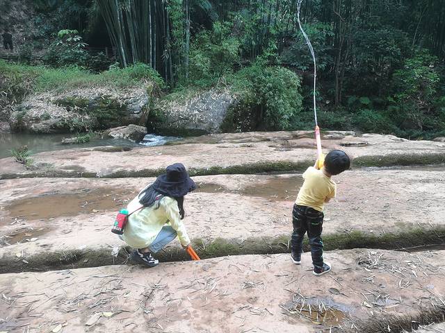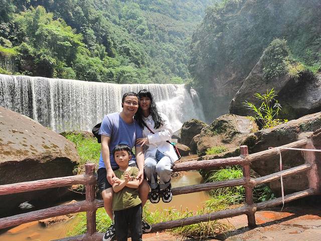第二站:丹霞大瀑布(观光车20元,电梯40元,我觉得电梯是非常没必要购买的,)。午饭后开车直奔景区,买票75一人,60岁老人不要门票。我们选择的是走路到大瀑布,然后坐观光车回程。注意:1.3-4岁以上的小孩都能走下来,建议多个小孩同行并带水枪,孩子可以玩水,不然他们很无聊滴。2.里面购物几乎都是市场价,不宰客。3.法定节假日建议午饭后去,人少一半,免得排队。4.路线不是回路。建议一边坐车,一边走路。半边路程1个小时。