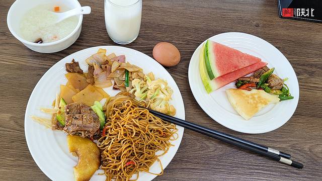 早饭6点40分左右就陆续有了,很丰富,还能打包一点作为中午的干粮