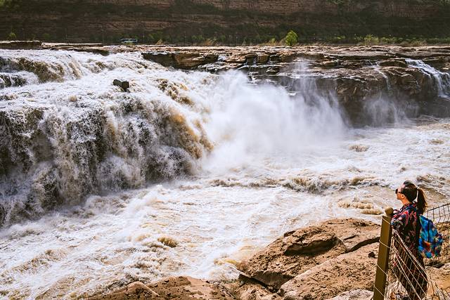 1000立方米/秒的河水,从20多米高的陡崖上倾注而泻,形成“千里黄河一壶收”的气概。