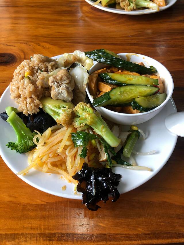 西山二区里有个素斋店,素斋自助,早上10元,午晚25。味道尚可,饱腹而已。另:岛上没有好吃的东西.......