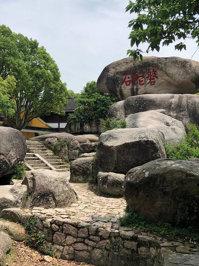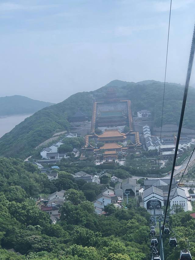 慧济寺,为普陀山三大寺之一。从索道站出来是一个小小的商业街,啥也别买,听我的没错。穿过商业街后看到佛顶山石刻后右转,沿路进入慧济寺(台阶上的道路是出口)。慧济寺在普陀山最高处,因处佛顶山顶,也称为佛顶山寺。寺院深藏高岗林屏之中,清幽绝耸,“入三摩地”四个大字题刻在入口处,寺院主要殿堂布局在一条水平线上,依山势而建,山门对面,有观景平台,可观诸峰,群岛,莲花洋全貌。慧济寺不算大,如果大家游玩时间卡的准些,可以去寺院食堂吃素斋,很有名哦。