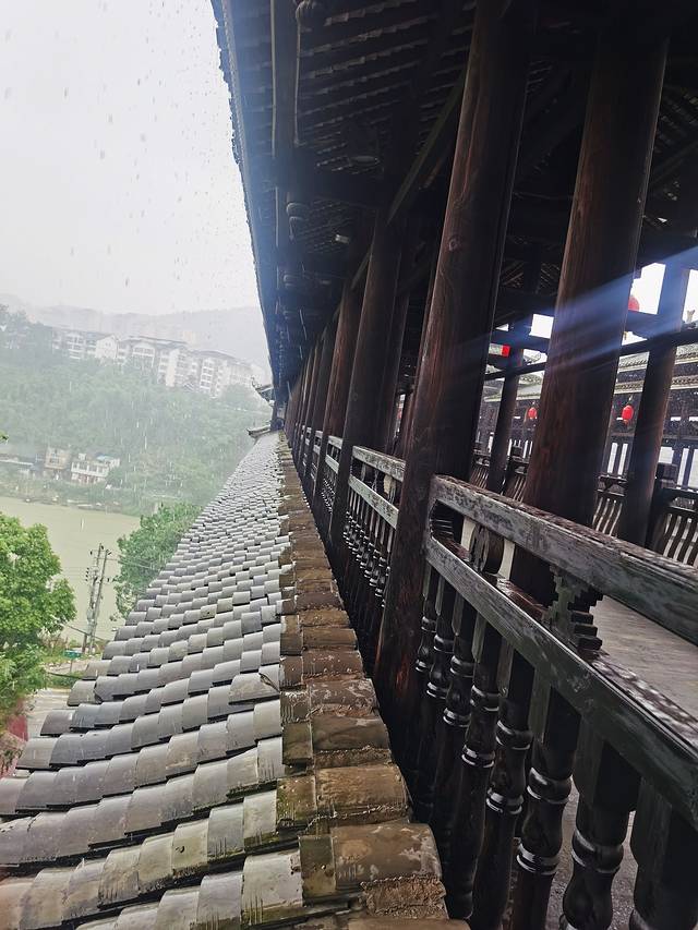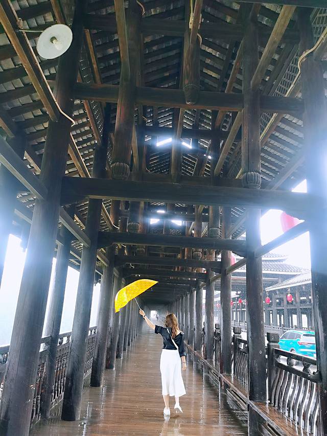 步行到风雨桥,竟然下起了小雨,哦不,突然变成大雨,还好老公明智带了伞,雨中的风雨桥太美了。