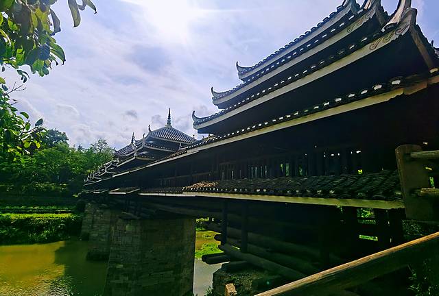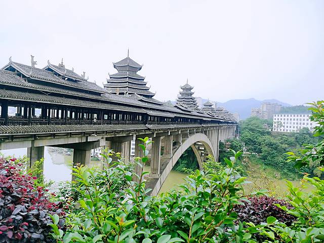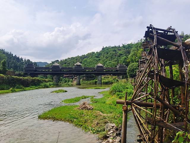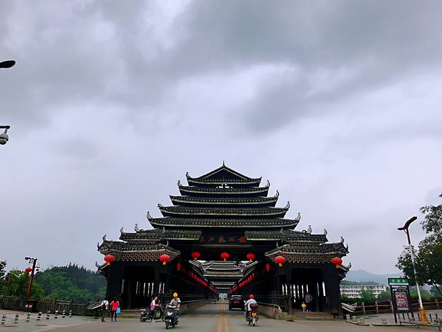 最吸引人的非程阳风雨桥莫属,风雨桥又叫永济桥,盘龙桥,是典型的侗族建筑,这座横跨林溪河的木石结构大桥,建于1912年,于1924年建成。它的建筑惊人之处在于整座桥梁不用一钉一铆,大小条木,凿木相吻,以榫衔接。全部结构,斜穿直套,纵横交错,却一丝不差。郭沫若先生曾题诗曰:艳说林溪风雨桥,桥长廿丈四寻高。重瓴联阁怡神巧,列砥横流入望遥。竹木一身坚胜铁,茶林万载茁新苗。何时得上三江道,学把犁锄事体劳。