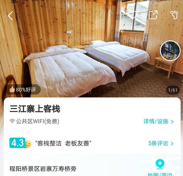 她家评论里说隔音不好,木质的房子隔音好才怪,但我们去的时候已经是淡季,整个民宿只有我们一家人住,所以不会觉得吵,哈哈,地板踩起来咯吱咯吱响也是正常的,不过老板铺了地毯,好很多。房子里也很整洁,但是记得一定不要开纱窗,小飞虫会很多,这家老板也很和蔼,两间亲子间砍价到220元,比心❤️~这件事情告诉我们,淡季住民宿大可不必着急网上订。