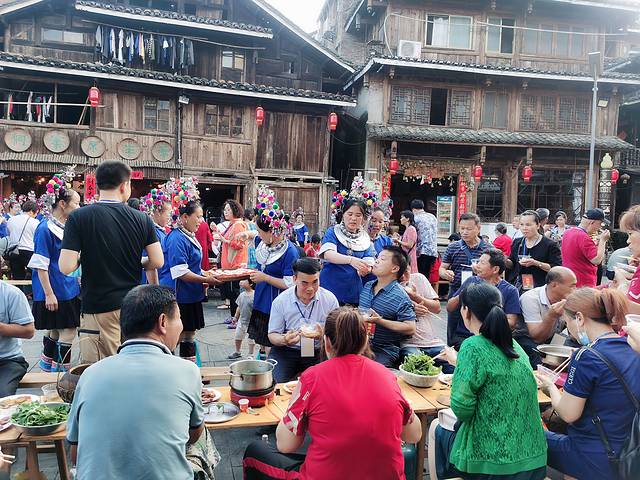 马鞍寨百家宴5:30开始,找客栈买票会便宜一丢丢。阿嫂们好热情的。大家一定要厚脸皮,百家宴是可以随便溜达吃,这样才能尝到百家菜,我在前面找好吃的菜,宝宝在我屁股后面跟着🤗🤗
