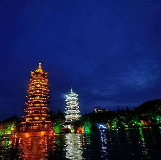 这几天桂林总是下雨,水位上升,两江四湖改为夜游四湖:杉湖,榕湖,桂湖,木龙湖。晚上的景色甚美。详细的就不讲了,大家自己去体验吧~