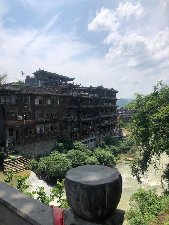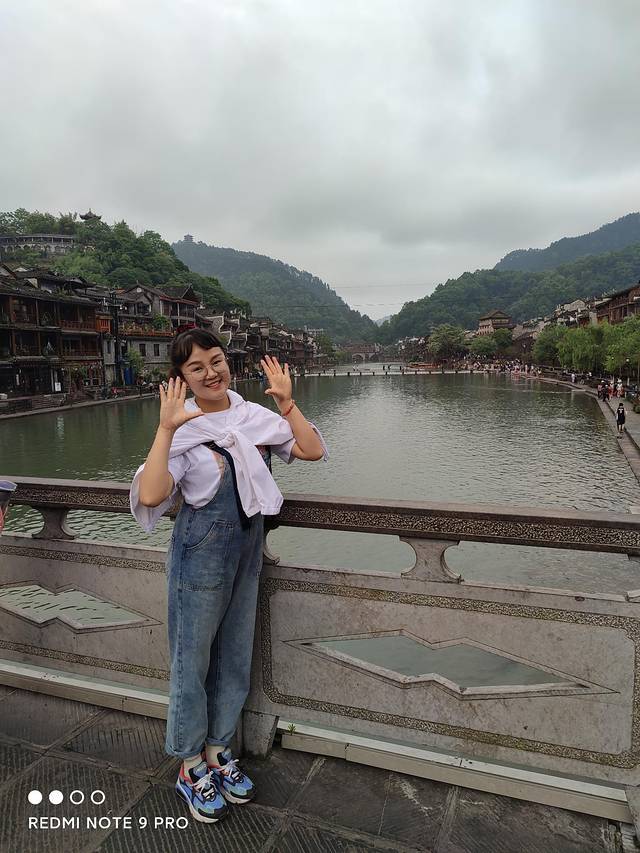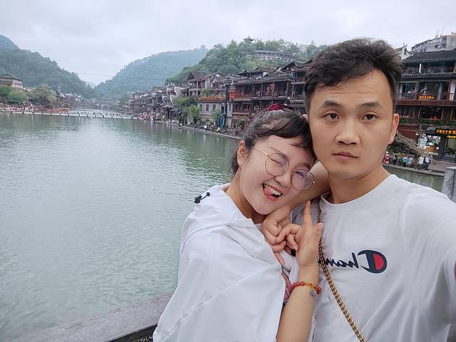 5月13号早上7点钟在酒店旁边的广场集合,加入旅行团前往四百多公里外的凤凰古城,预计下午2点半抵达。我们坐在双层大巴的第二排,视野还是很不错的。这个时候就开始了旅途中最重要的项目~吃零食。带了一大包吃的还怕吃不完,结果是自己想多了,哈哈!中午抵达服务区赶紧下车找座位吃泡面,这个时候泡面都显得格外美味呢!下午两点多终于抵达凤凰,集体乘坐摆渡车到达古城门口,先去办理了入住,导游看我两是小孕妇夫妇,果断安排了古香古色的大床房。