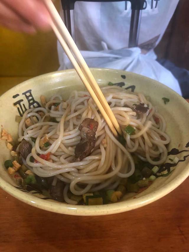 来湖南第一顿必须嗦粉,但是老公这孩子刚开始是拒绝的,陕西人的口味爱好吃面,粉这种美食一时间还难以接受。在住的酒店附近找了一家人气很旺的粉店,在我恩威并施下终于尝试了干拌卤粉,边吃边说没想到嗦粉还是很不错嘛,哈哈!