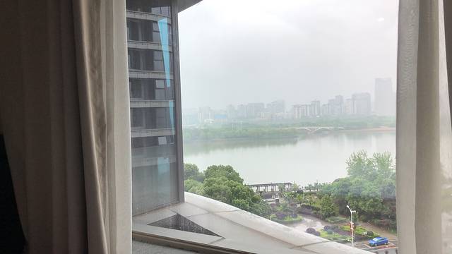 下午两点到达酒店,办理完入住赶紧躺着睡一会儿,准备下午去黄兴广场逛,睡前还是阳光明媚,对面的橘子洲尽收眼底,湘江上波光粼粼,睡到4点多被雨声惊醒,暴雨说来就来,伴随着打雷闪电,天地间一片雾蒙蒙,雨水像是从天上倒下来一般。大雨持续了一个小时左右,就渐渐停息,太阳又冲出云层,江边行人也多了起来。