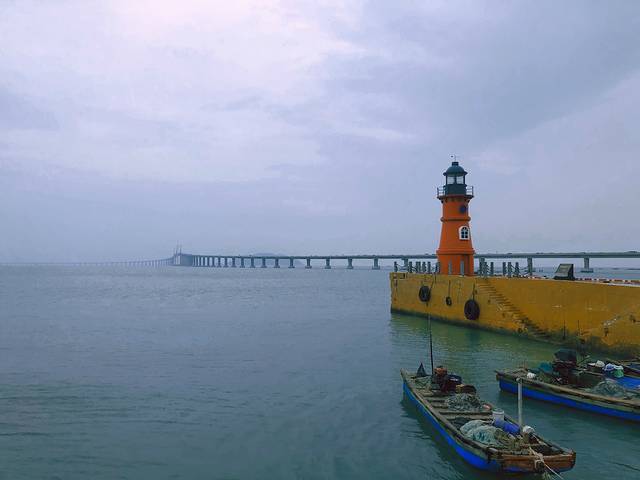 红色的灯塔,明亮美好,童话般的感觉。这里又叫做启航广场,是老的南澳码头。依稀看得出来,南澳大桥建成之前,这里是一个颇具规模的码头。码头背后的山上,有长尾山炮台、太后古宫。