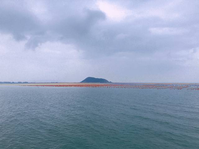 在要离开南澳的那天,从青澳湾出发,沿着东北沿线,在深澳片区的海面上,突然发现成片的彩色方阵。可惜是阴雨天气,如果是阳光明媚,景色肯定非常的惊艳。