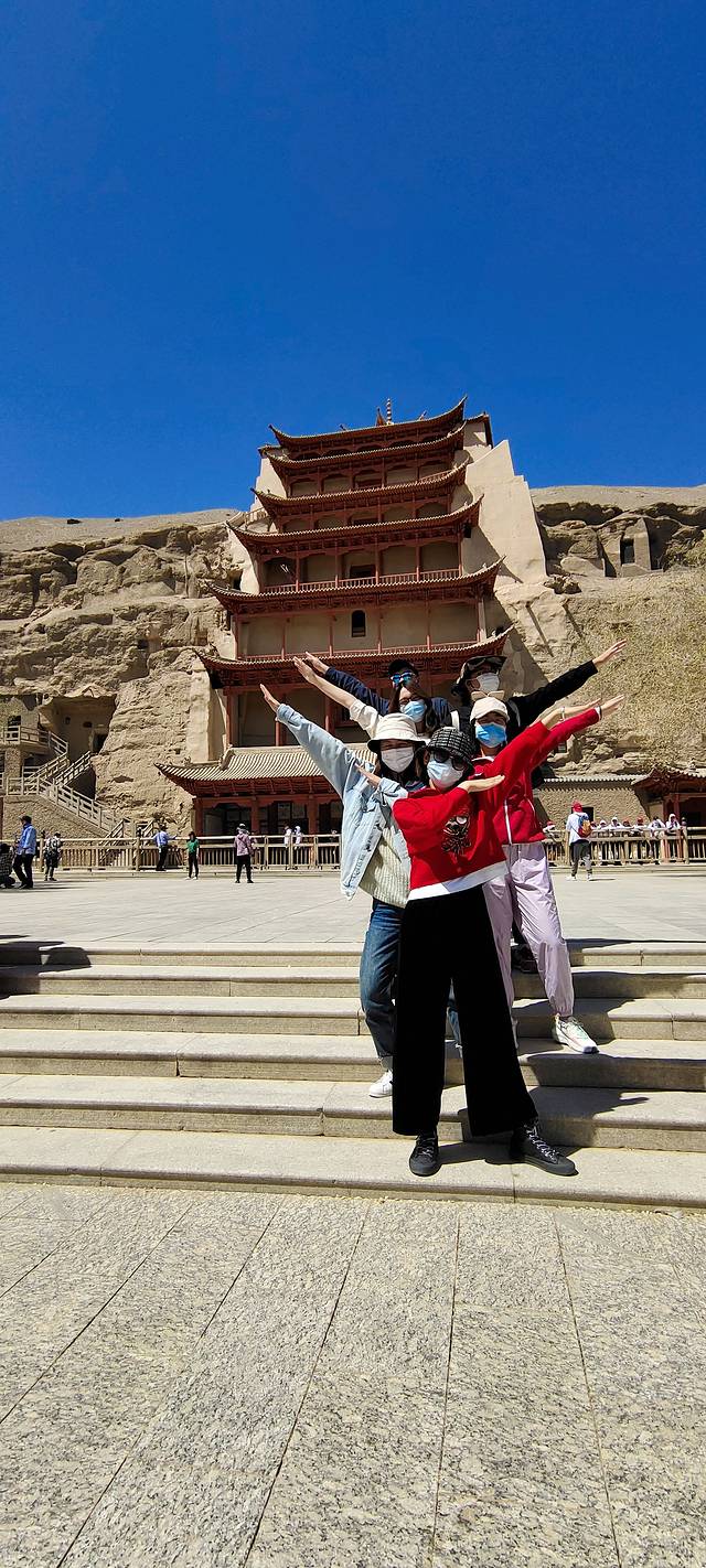 最后拍照合照吧。我们的小伙伴中午吃完饭就赶往张掖机场,飞回家喽,剩下的路我们5个人一起走喽😄