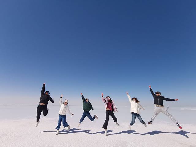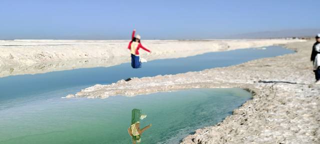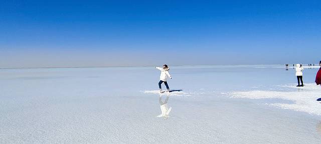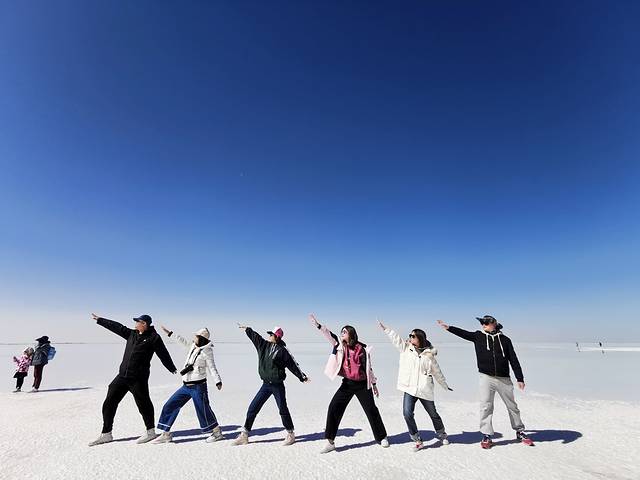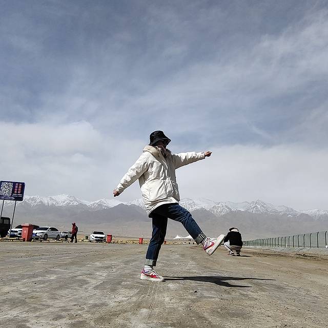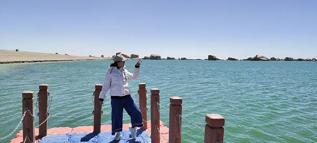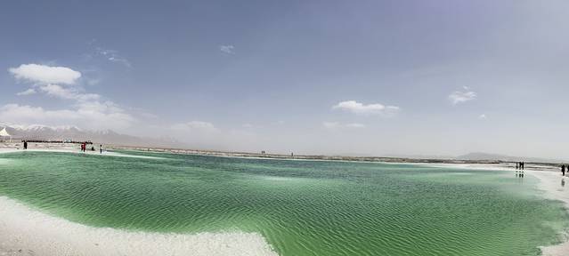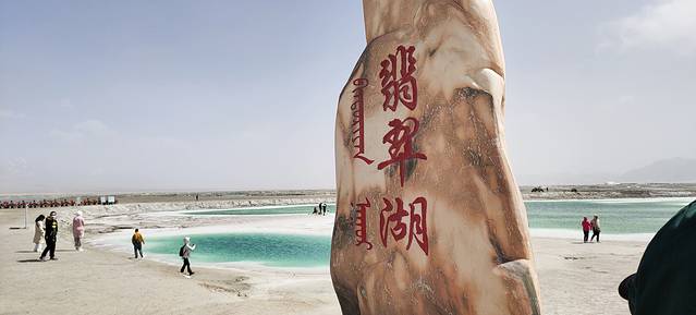 行程第二天,早上8点半准时从茶卡盐湖那面的酒店出发,行程500公里。路上看见了小狐狸,一蹦一蹦的。奈何过去的太快,只能看一眼。这个季节的大西北都是风,小的龙卷风,卷起的沙子吹得到处都是,即使这样也不影响我们前行的脚步。中午一人一碗15元的牛肉面,里面有5小块牛肉[偷笑]再来一份拍黄瓜22元,高原地区蔬菜很贵的。吃完饭来点水果零食,继续前进,直奔翡翠湖。碧绿碧绿的湖水,下面全是盐。跟着旅行社的大妈们拿出他们特有的红色围巾,不放过每一个拍照地方。但是吧,旅行社只给你20分钟拍照,时间对于他们来说完全不够→_→。还是我们好,特别自由。本想航拍,但是风太大,航拍不了的。翡翠湖现在是免费的,其他一切还在开发中,未来可能会收钱吧。