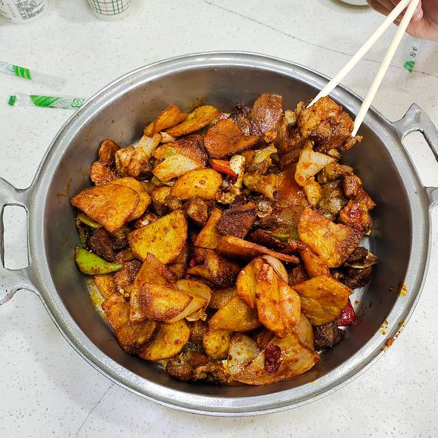 晚上吃的炕锅108元一斤羊肉,配上土豆片。真的是超级好吃。推荐大家去打个卡