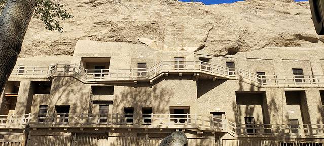 门票自带讲解和公交。五一开始就属于旺季了,12个窟只开8个,配备的都是园区里面专属的导游。一个人带着20左右的人,按顺序参观,里面不允许照相。保护文物。