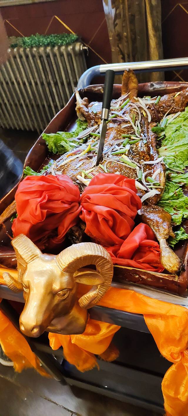 结束了莫高窟的行程赶紧去吃一顿好的吧。来了大西北不吃烤全羊怎能行呢(●°u°●) 」