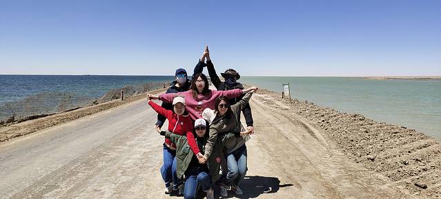 逛完青海湖稍微吃一点东西去茶卡盐湖。虽然距离很远,但是,天气也是灰蒙蒙的,完全没有所谓的天空之境。好像由于季节的原因,盐水也不是很多。我们回来的时候坐着敞篷小火车。哈哈哈看他们被风吹得,好惨(╥ω╥`)