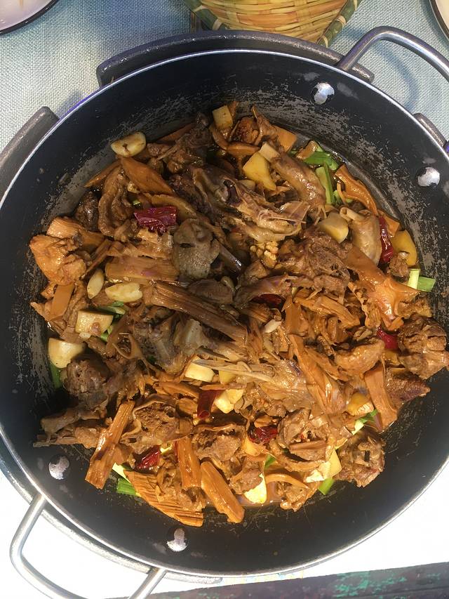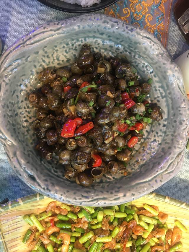 吃饭时候天已经黑了外面开始下雨,居然停电了,各家小型发电机开始运作,只有他家的发电机不好使,我们就摸黑吃的饭,不过我想吐槽,这里的人上菜方式及其不对, 比如 10桌客人等待,他们是第一桌全部上完了在上第二桌,脑补一下第十桌要饿晕倒了! 二是都要的比啤酒鱼是不是真可以考虑一下一起做呢,笋非常新鲜,可不过是苦的,我当时觉得糟蹋了如此新鲜的笋。这里太黑了没有拍照。吃饭回来后我发现他家宾馆居然也没有电,漆黑一片啊,那真是人在穷途!退了宾馆,天已黑拖着行李箱及满身的疲惫寻找一个住的地方,那一瞬间心凉了,囧途。还好天无绝人之路,找到了一家老板不但按照原来的价位收取,房间竟然出奇的大,室内可以泡茶,景色略逊一些,总体很满意。