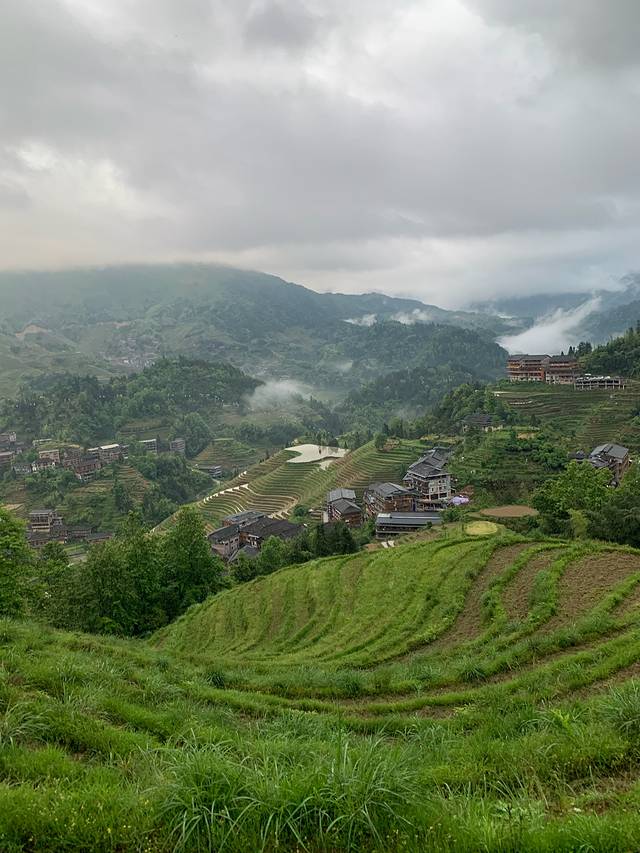 到达 桂林 之后,拿完行李大约下午3点40分,我们包车去的龙脊梯田的大寨,车费450元。如果下午3点之前到达的伙伴可以考虑大巴车,不过我们只能包车啦!车程需要大约两个多小时,路上盘山道比较多,下车的我就吐了,太晕车了。入住酒店老板非常热情,还帮我们抬了行李了,需要走一段路程, 宾馆的景色很美,阳台直接欣赏梯田美景。