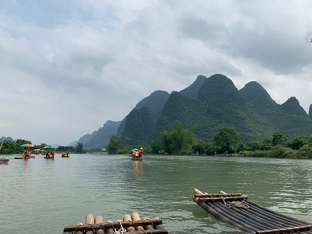 回来后不到5分钟就到我们啦!这里要强调一下,记得给撑船师傅一些小费,20到50吧,我们给了20元,让师傅慢慢开,偶尔停下来拍拍照片,整个旅行瞬间升级!一个半小时的人在画中游,小小竹筏江中游,巍巍青山两岸走!真的太美了!