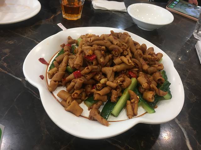 打车回到西街取行李,临走前还是去了椿记烧鹅,最后一次机会怎么可以放过!点了酱爆鹅肠,潮式卤鸭翅,还有银鱼笋丝,还尝了尝 桂林 油茶(不喜欢),免费水果,总体很满意!