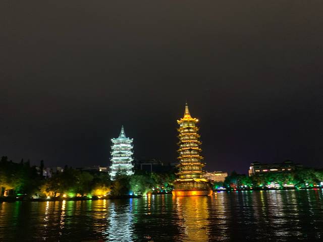 晚上10点10分两江四湖。票价200元一位,全程1个班小时。可能是太累的,本来很好的景色可是没太高的兴趣,还是蛮不错的。