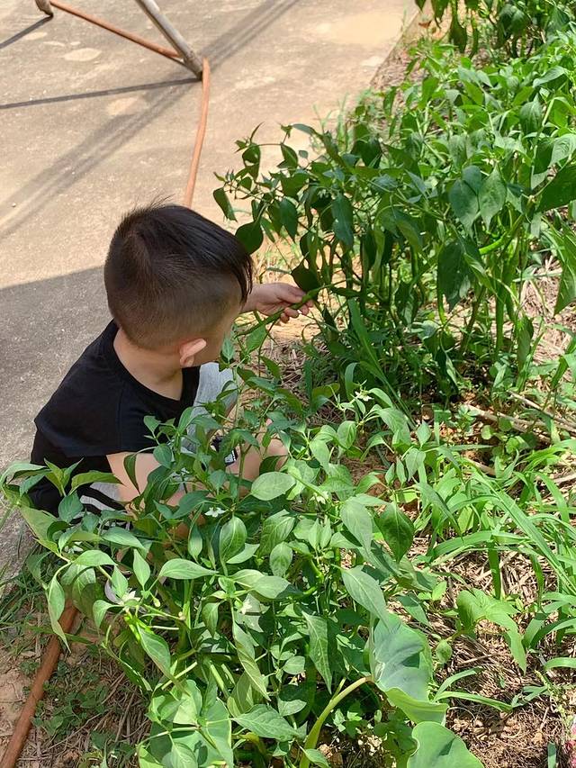 儿子第一次摘菜