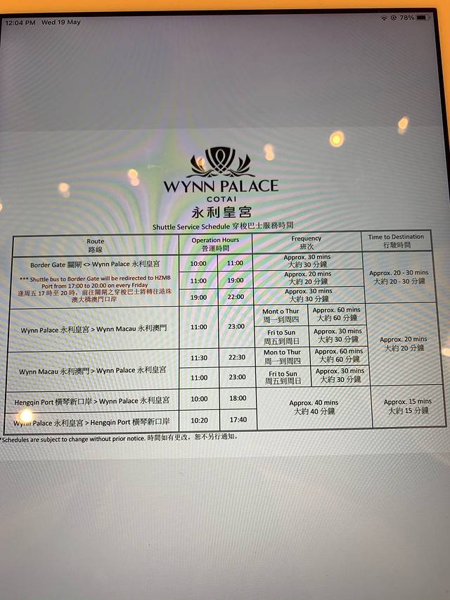 永利皇宫免费大巴🚌时间,想去澳门半岛:大三巴牌坊、大炮台、渔人码头的宝宝们可以参考哟