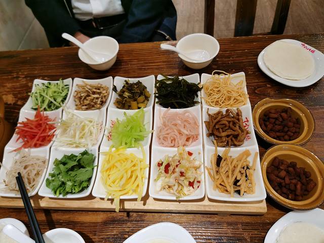 这个店在20楼,导航导得我在楼下逛了三圈,实在是找不到,打电话才知道在楼上,也是晕了!丝娃娃就是各种蔬菜切丝儿,然后用类似于春卷皮用来卷着吃,有各种蘸料,味道还不错。