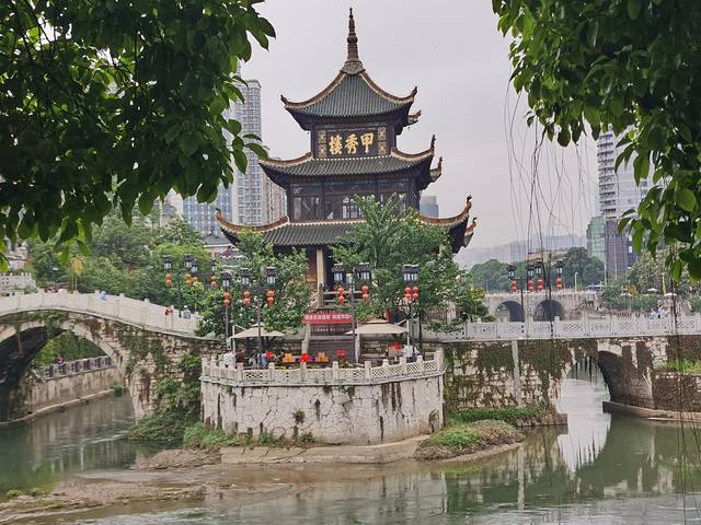 从黔灵山出来 ,走了大概10多分钟,可以坐公交直接到甲秀楼,很方便,也环保。