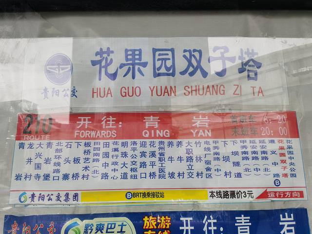 我们住的花果园双子塔附近,旁边就有公交到青岩古镇,3元/人,坐公交需要1小时40分钟左右,也可以坐旅游大巴,15元/人,要快些,节俭惯了的父母不想花多的钱,说坐公交能够看到城市的景色,反正也不赶时间,由他们了。