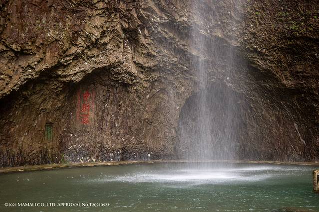 看完中折瀑,走下台阶,也要拐个弯去看看下折瀑。瀑朝南,高约50米,仰望天空,呈葫芦状,人称“葫芦天”。左侧有一个朝西同穴,叫作“龙游洞”,洞深七、八米,相传古时有游龙过此。