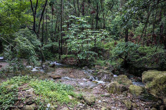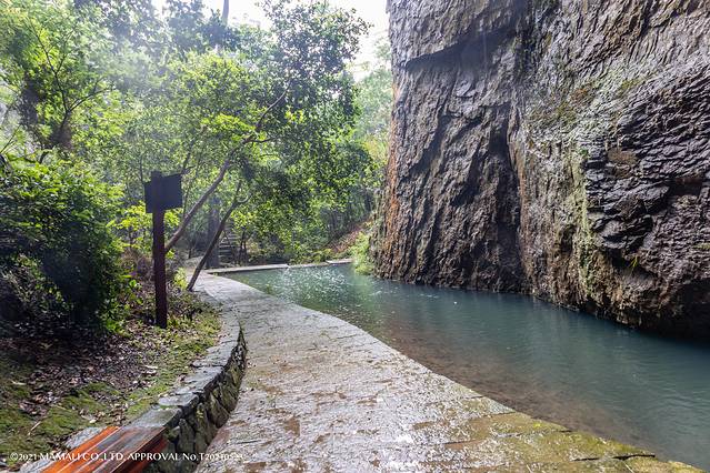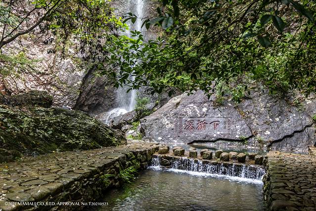 沿着显胜门的台阶一路往上,可见清幽的潭水,碧绿洗眼,不输九寨沟了。最上面还有一条瀑布,瀑布随深谷山涧透迤下山,水声潺潺,或激越,或舒缓,好似一曲大自然演奏的优美乐章,悦耳动听。