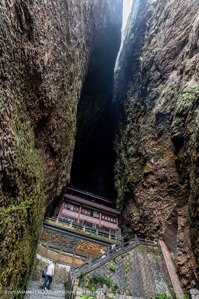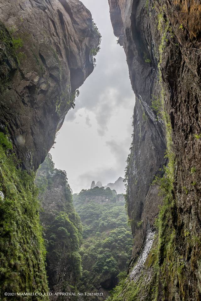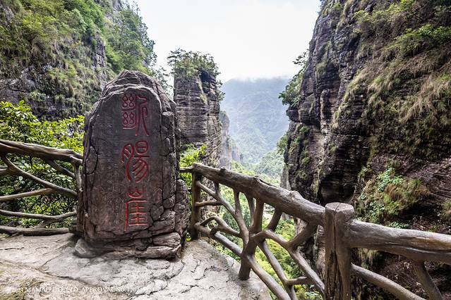 显胜门,又名仙圣门,从仙人坦村进南入2公里,即见前方两壁陡立,直上云霄,气势十分雄伟峭拔的两座山峰对峙如门。显胜门高达数百丈,约200米,两门相隔仅十余米,沿着弯曲的石路走到门内,抬头仰望,壁顶复合,仅留一线,“非中午夜分不见明”,眼见为实,不愧为“天下第一门”。