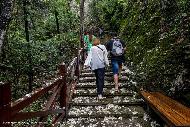 三折瀑系一条水流,历挂三处危崖,形成上、中、下三条姿态各异的瀑布。这次行程非常幸运,遇见了大雨之后,水量暴增的三折瀑!当地人都感慨好几年没见过水量如此丰沛的瀑布了。