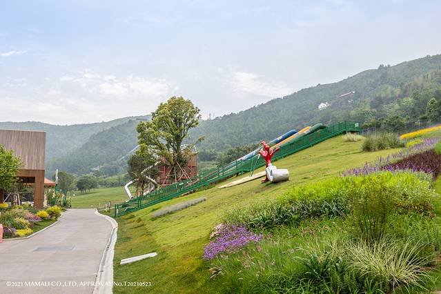 铁定溜溜乐园,有绿意盎然的大草坪,随手一拍可以假装在瑞士的既视感;有童趣满满的尖顶小房子,售卖美味的冰激凌、好玩的周边等等;还有开满鲜花的小路,散步遛娃都美妙;最棒的当属各种“溜溜”滑梯,不同高度不同斜度,可以嗨玩一整天。