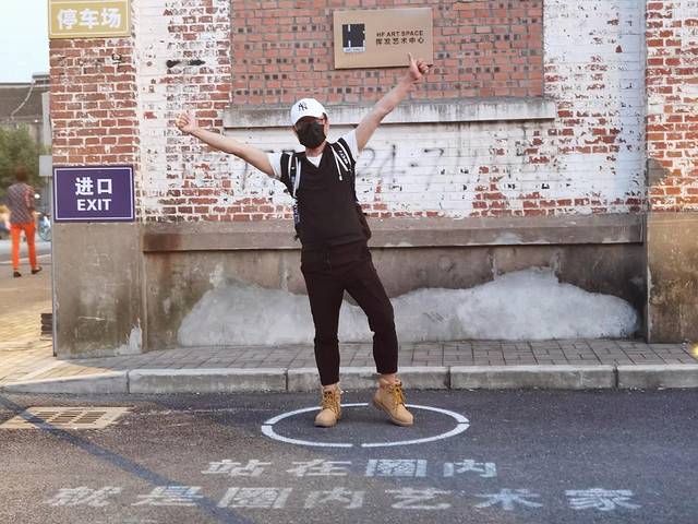 ⑤挥发艺术中心。这是一个独立的艺术空间,由艺术家何佶佴创立,中心展示了普世审美与当代艺术融合的很多作品,主要是打破艺术圈与大众之间的壁垒,这里是园内摄影打卡的热门场景之一,标志很小,找起来不太好找,为了拍这个圈内圈外,我们到处低头找这个场景,费尽周折,终于被我们找着了,然后圈内圈外、跳进跳出,玩的不亦乐乎,哈哈哈哈。告诉你一个找到这个场景的诀窍喔:北门进去的一条主干道一直直走,走到头就是人民河,离河不到的第二条路边的右手边停车位旁,就是这里。千万要低头找,要不就会错过的。