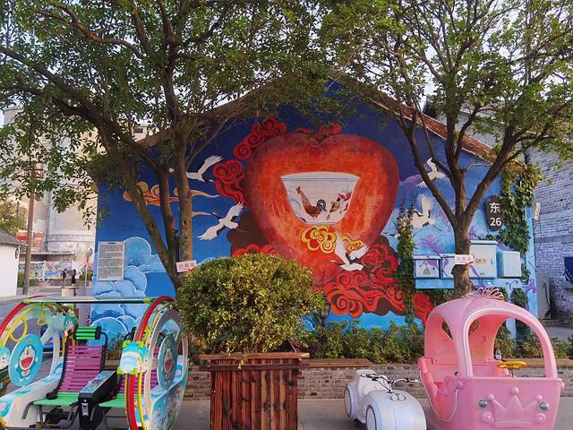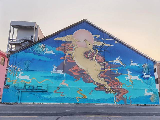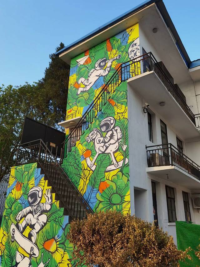 网评比较有名气的要数“十鹿九回头”涂鸦、太空花园+机甲涂鸦等。我挺喜欢看涂鸦的,我也挺喜欢涂鸦的,如果给我一面墙,我一定会展开想象的翅膀,画出最有特色的涂鸦。