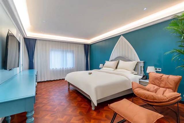 酒店一共有三种房型:美式乡村复式房型、地中海复式房型和日式和风房型。蓝色系列、地中海的Loft风格我情有独钟,最爱了,就这套了哈!